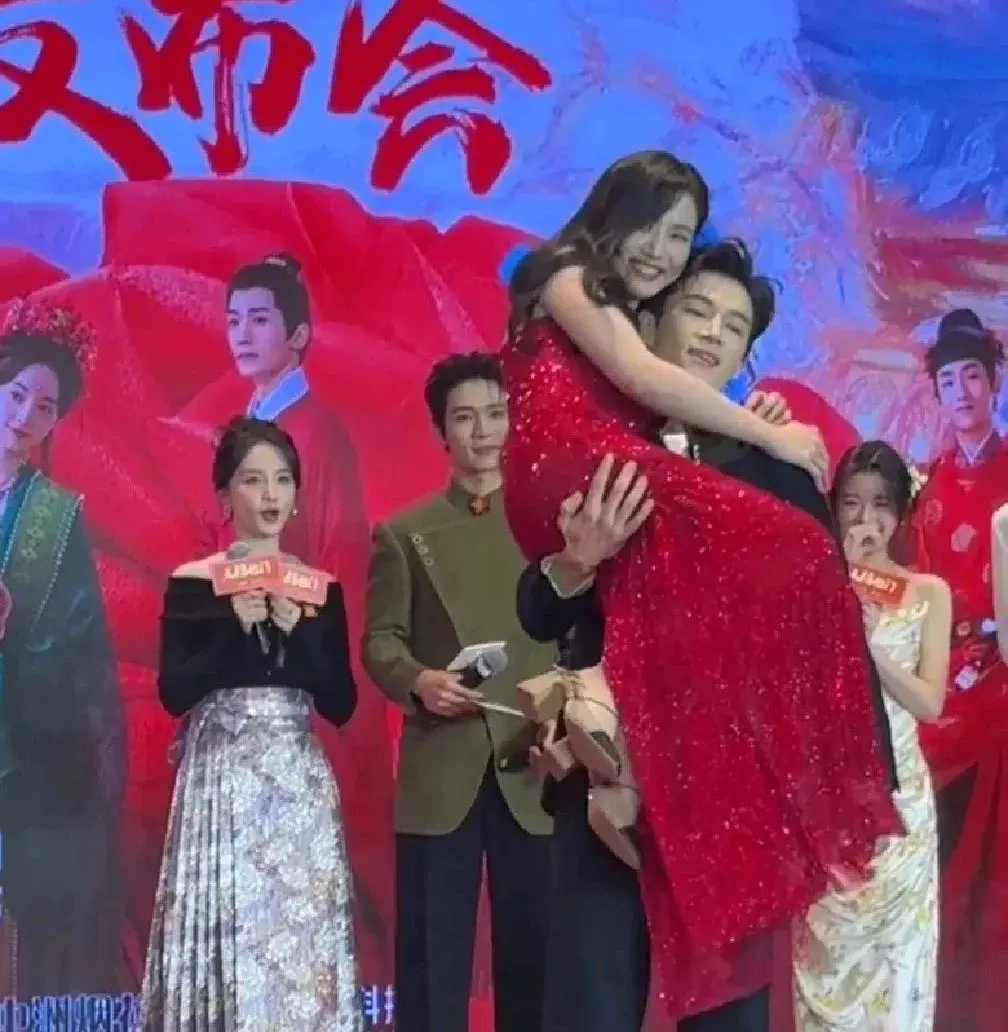 之前有剧宣当男女主婚礼办,踏着婚礼进行曲,男女主盛装出场,借位接吻,复刻单手抱名场面,现场大喊“爸爸妈妈我出生了”。